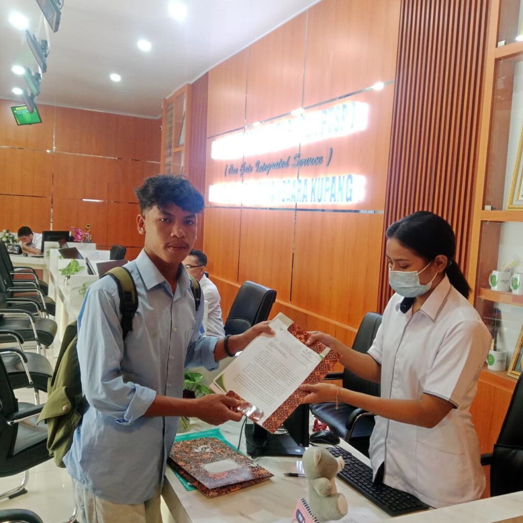 Ekson Wala Amah (WALHI NTT), representing CELIOS, submits the Amicus Curiae document to the One-Stop Integrated Service (PTSP) desk of the Administrative Court of Kupang, Monday, 9 February 2026.